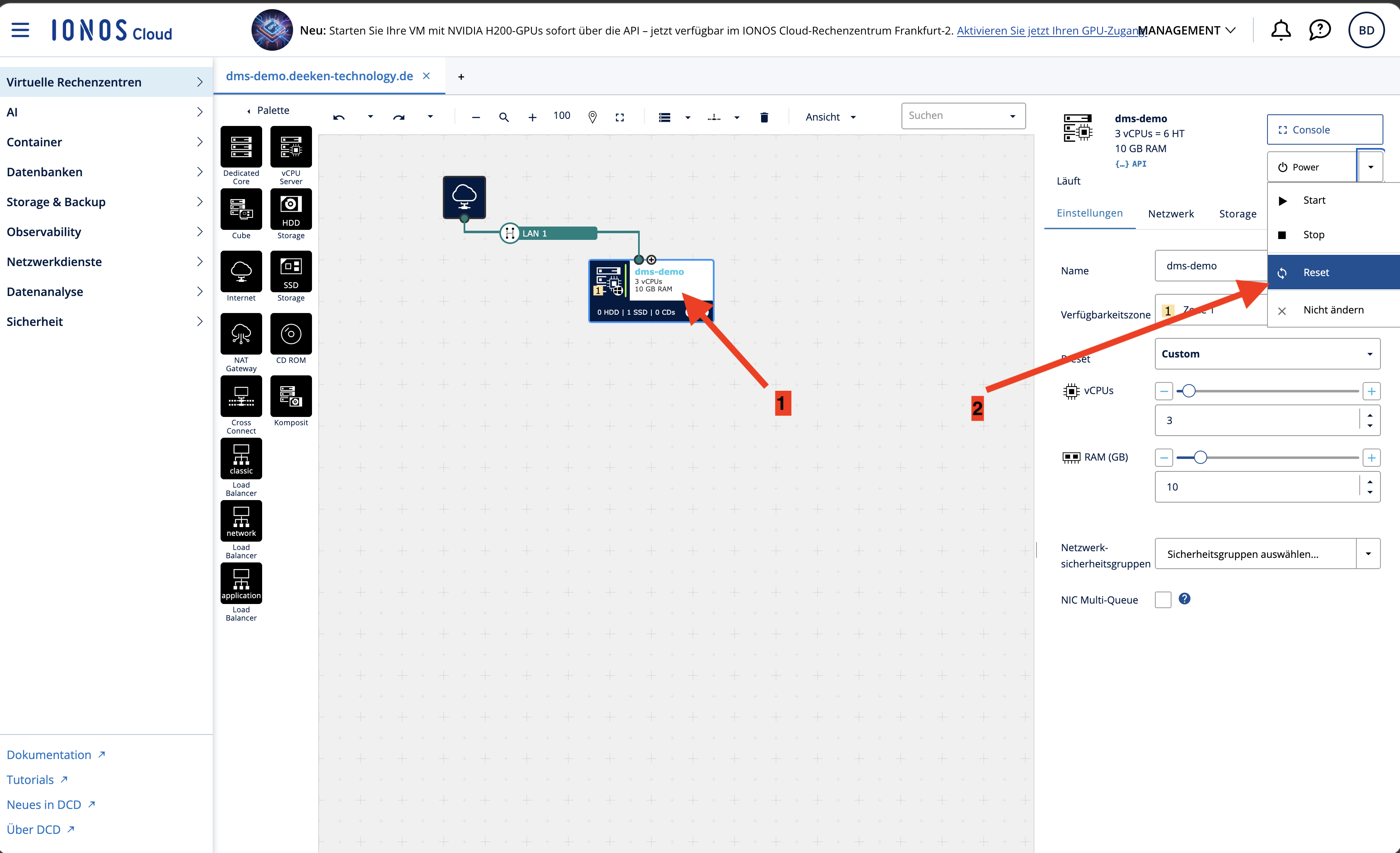 IONOS.Cloud - VM neu starten (reset)