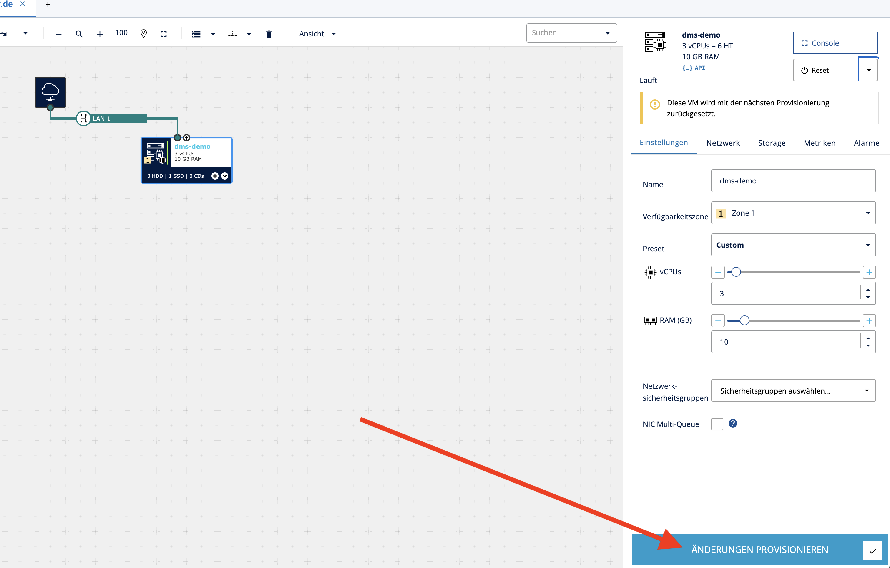 - Klicken Sie anschließend auf Änderungen provisionieren.
