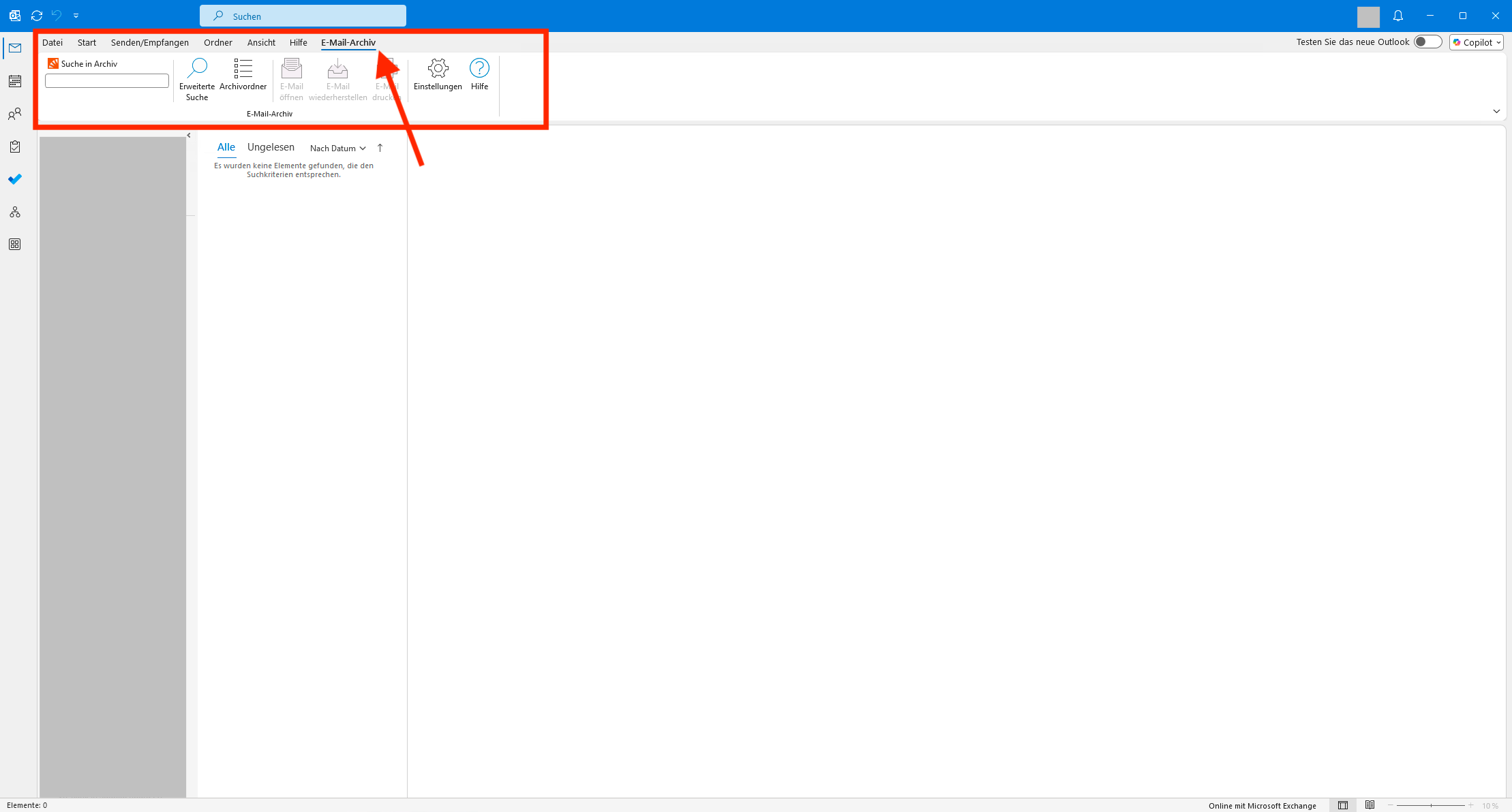 Nach der Installation des Outlook Add-ins können Sie auch innerhalb von Outlook mit MailStore arbeiten.