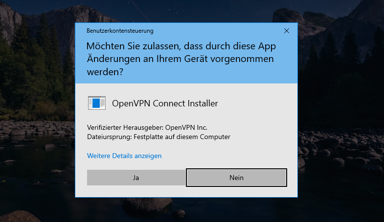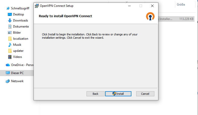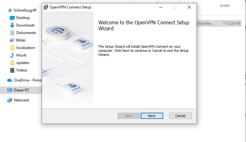 Hier dann die openvpn-connect Datei doppelklicken zum Ausführen.
